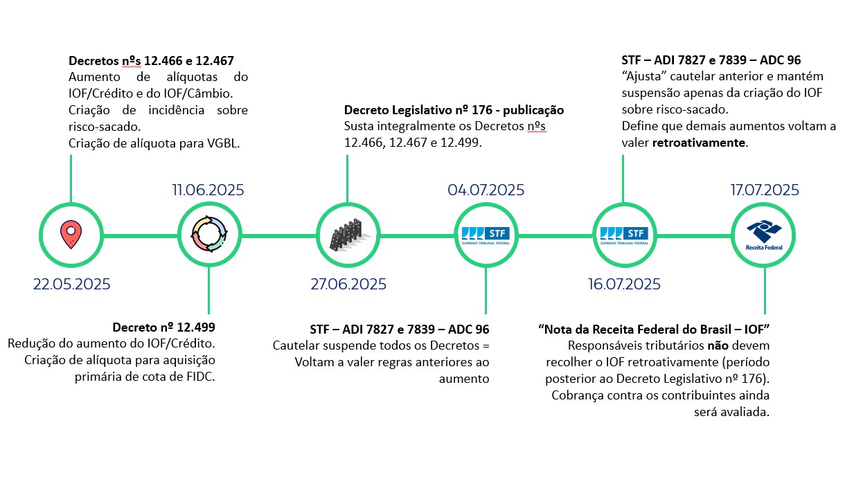 The Federal Government's initiative to increase the Tax on Financial Transactions (Imposto sobre Operações Financeiras – IOF) rates on various transactions underwent significant developments since our prior advisory (link), as may be seen in the following timeline: